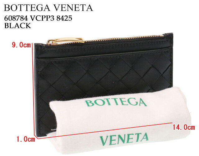 Size Color Material ■ W:14.0×H:9.0×D:1.0cm ■ BLACK(ブラック) ■ 金具/ゴールド ■ 表側/羊革50%・牛革50% ■ ライニング/カーフレザー Spec Attachments ■ 開閉/ファスナー ■ 外側/カードスリット×2 ■ キーリング×1 ■ 保存袋 ■ プロダクトカード ▼オススメポイント BOTTEGA VENETAを代表するイントレチャートデザインのカードケース&キーポーチ。