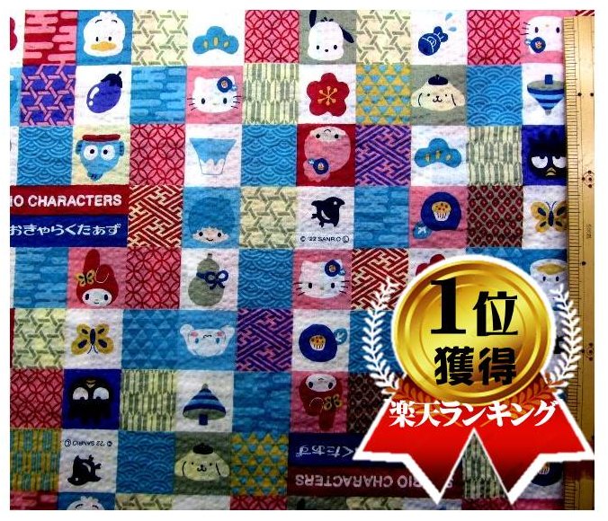 現在地 ● トップ > ママがんばって! > 生地 > リップル(サッカー)生地 > サンリオ キャラクターズ ( 市松柄 ブルー系 )#48 −− <夏の生地の定番です!> −− ワンピースやスカート・甚平・浴衣など色々なものが作れます。