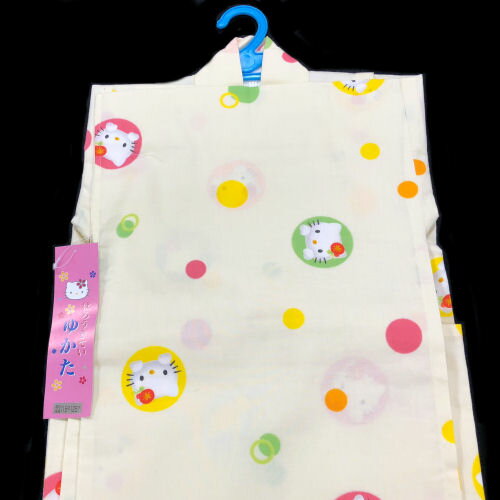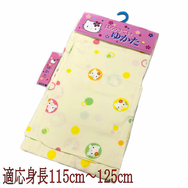 【送料無料】ゆかた こども サンリオ ハローキティ 浴衣 女の子 白 ホワイト 120cm 7才から8才用 子供 日本製生地使用 水玉柄 綿 夏 祭り 着物 ジュニア キッズ かわいい おしゃれ 人気 キティちゃん はろうきてい 適応身長115cm〜125cm