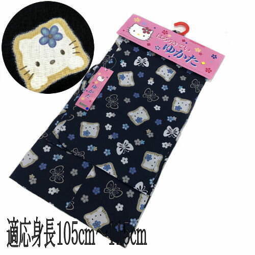 【送料無料】ゆかた こども サンリオ ハローキティ 浴衣 女の子 黒 ブラック 110cm 5才から6才用 子供 日本製生地使用 綿 夏 祭り 着物 ジュニア キッズ かわいい おしゃれ 人気 じんべい キティちゃん はろうきてい 適応身長105cm〜115cm