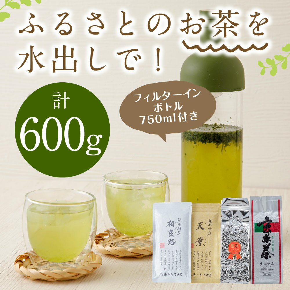 【ふるさと納税】ふるさとのお茶を水出しで 計600g セット 緑茶 茶葉 玄米茶 番茶 お茶 冷水茶 フィルターインボトル付き 詰め合わせ ギフト 送料無料