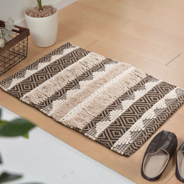 【100円引クーポン】玄関マット 玄関 風水 室内 北欧 天然素材 80 50 綿100% おしゃれ マット 綿 かわいい 50×80cm コットン 小さい 柄 高級感 ベージュ インド綿 洗濯は不可 オールシーズン 通年 年中