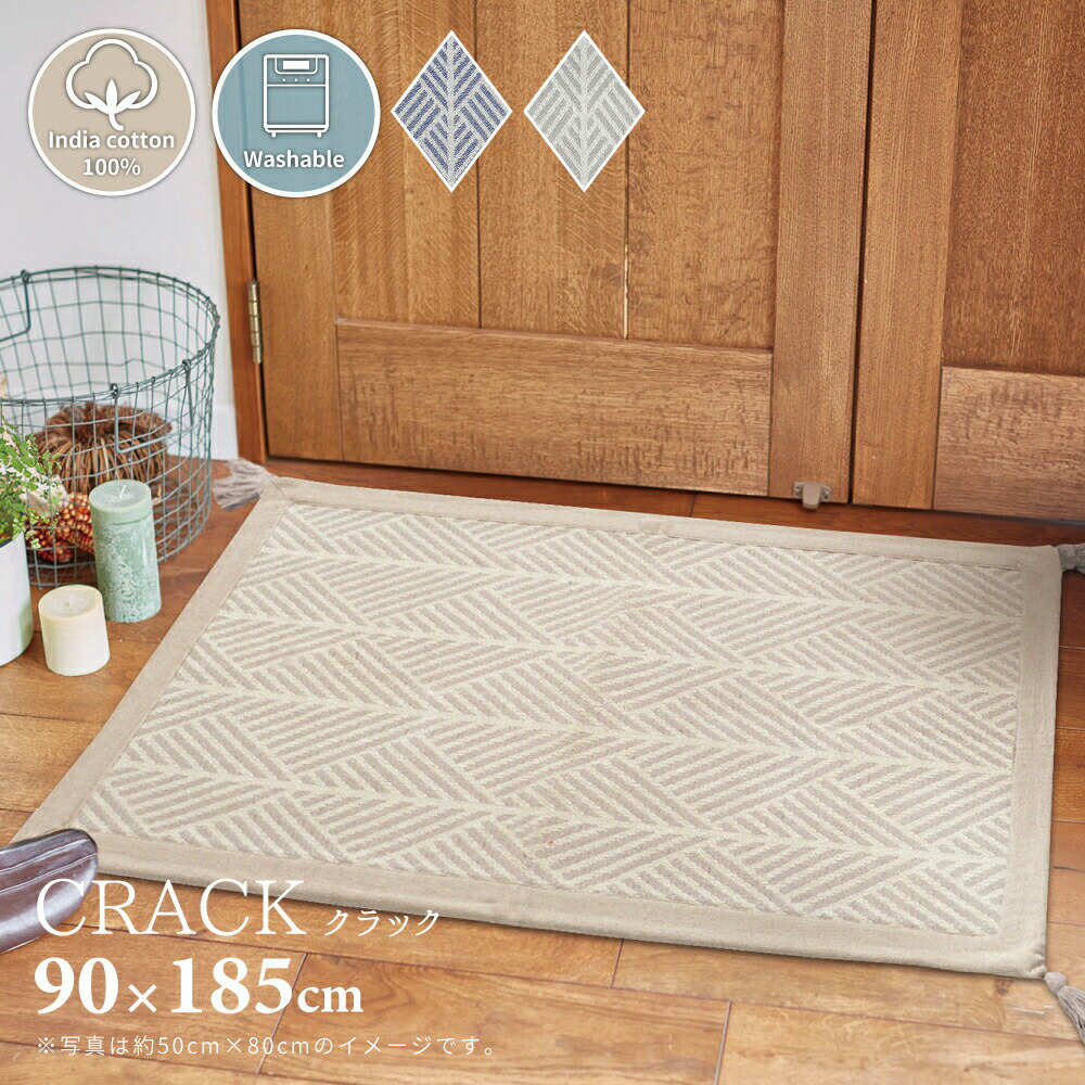 送料無料 インド綿 ナチュラルクール マット 洗濯機 洗える 玄関マット 廊下敷き 約90×185cm タッセル付き 綿100% コットン オールシーズン クラック ネイビー エントランス リビングマット センターマット 絨毯 ラグ 玄関 アンティーク ヴィンテージ 敬老の日