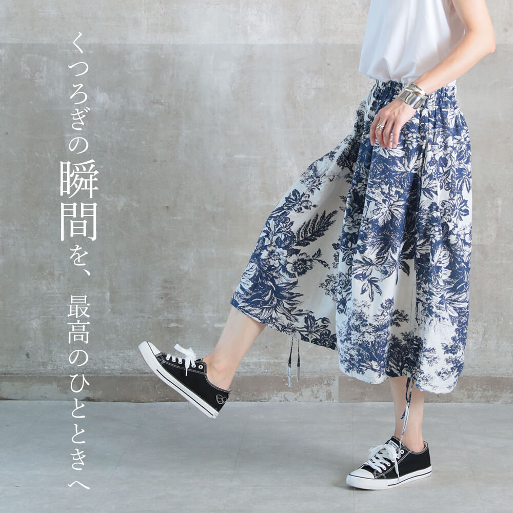 【MAX99%offクーポン】LIZDAYS リズデイズ ワイドパンツ ガウチョ ゆったり リラックス レディース ボトムス パンツ ズボン M/Lサイズ ウエストゴム 総ゴム 軽い 軽量 体系カバー かわいい 楽ちん ゆったり 柄 模様 スタイルオンバック a50