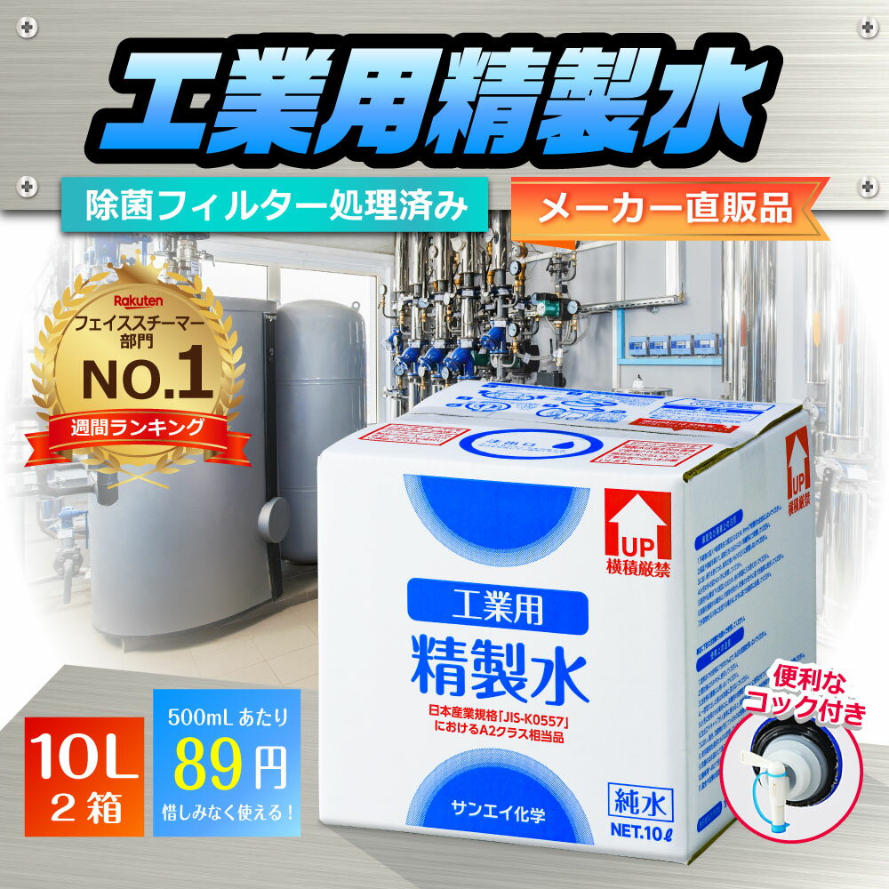 サンエイ化学 精製水 工業用 精製水 10L×2箱セット コック付き 業務用 大容量 | 【送料無料】 アロマ スチーマー用 歯科 クーラント液 LLC アルコール 消毒液 無水 エタノール 除菌スプレー 除菌水 希釈水 液晶 洗浄 純水 蒸留水 イオン交換水 超純水 せいせいすい 日本製